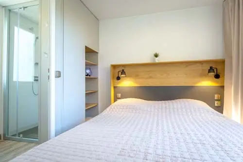 • Vaste Suite parentale avec salle d’eau et WC privatifs • Chambre avec 2 lits simples (lits 80 x 190 cm) • Chambre avec Mezzanine abritant 2 lits simples (lits 80 x 190 cm) • Salon convertible • Climatisation • Télévision • Cuisine équipée • Lave-vaisselle • 1 Salle d’eau • WC séparé • Terrasse couverte • Salon de jardin • Bains de soleil • Stationnement pour une voiture • Linge inclus (draps et serviettes de toilette)