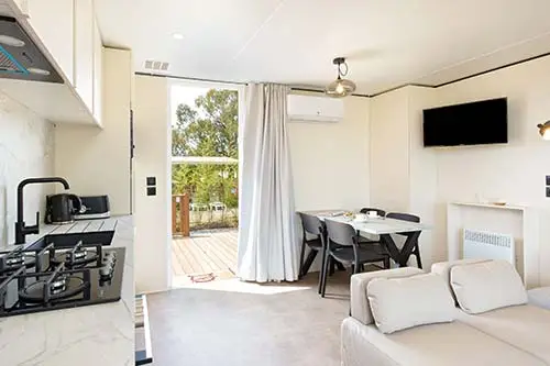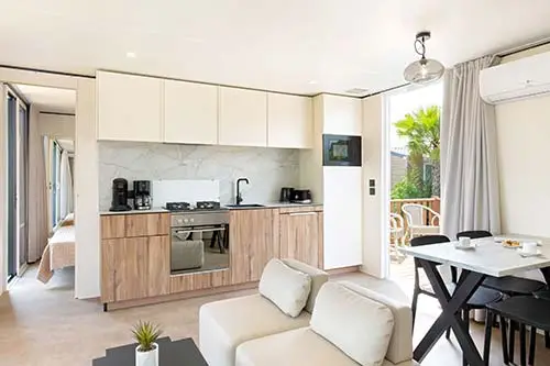 Avec son design contemporain, sa grande surface intérieure, et son agencement généreux, le Key West Signature transforme vos vacances en camping de luxe en une expérience inoubliable. Profitez d’un hébergement luxueux dans l’un des plus beaux campings 5 étoiles du Var, à proximité de Saint-Raphaël et des plages de la Méditerranée.